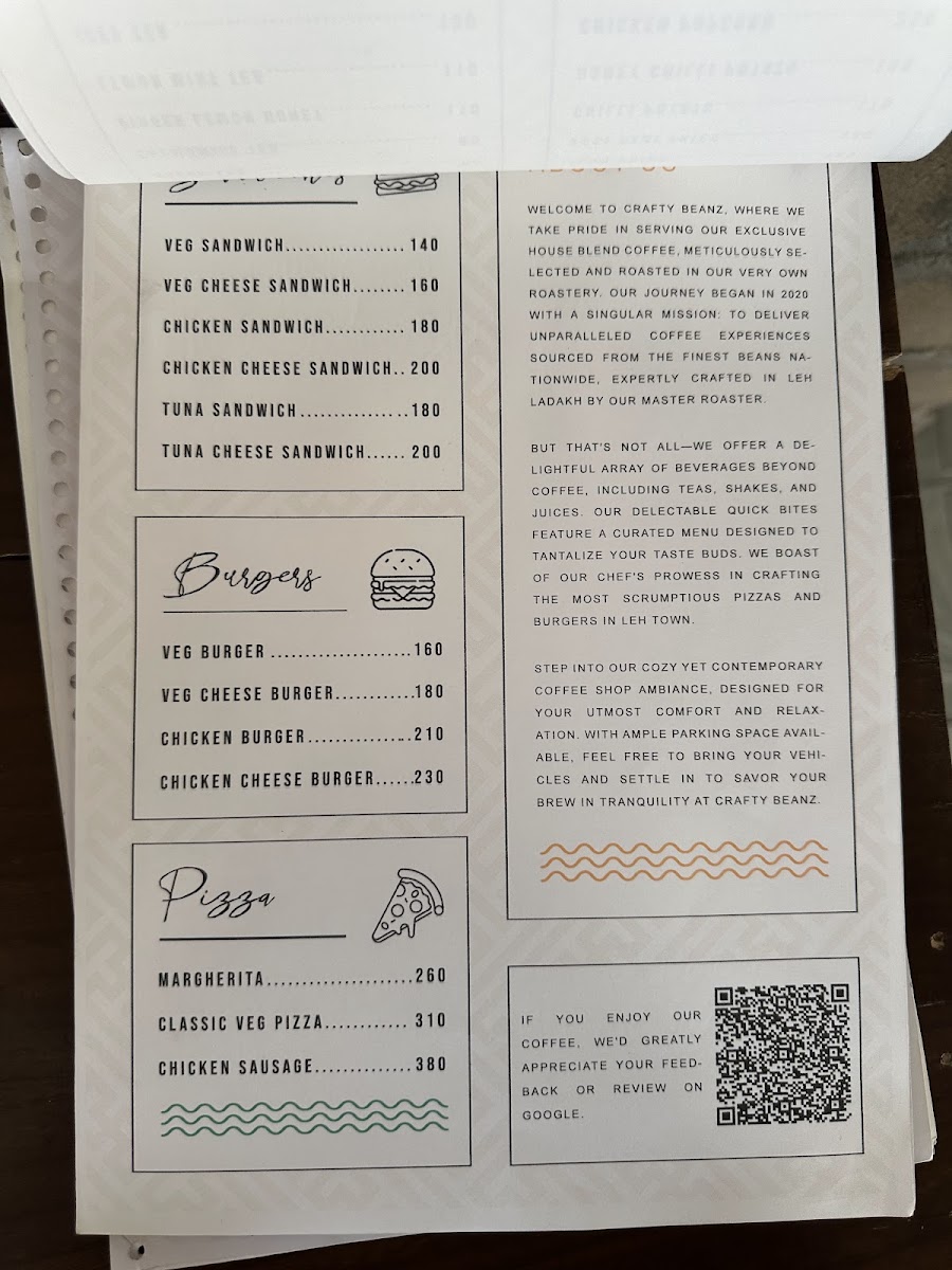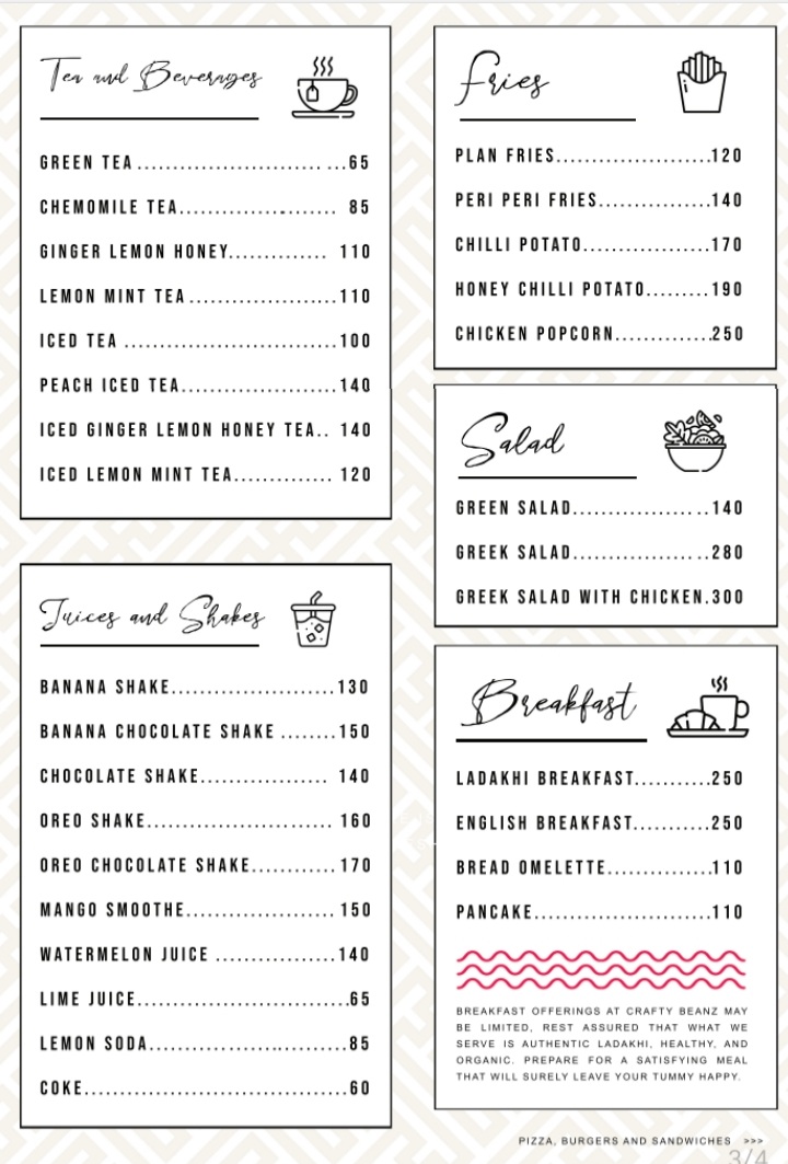 Crafty Beanz cafe and roastery Menu